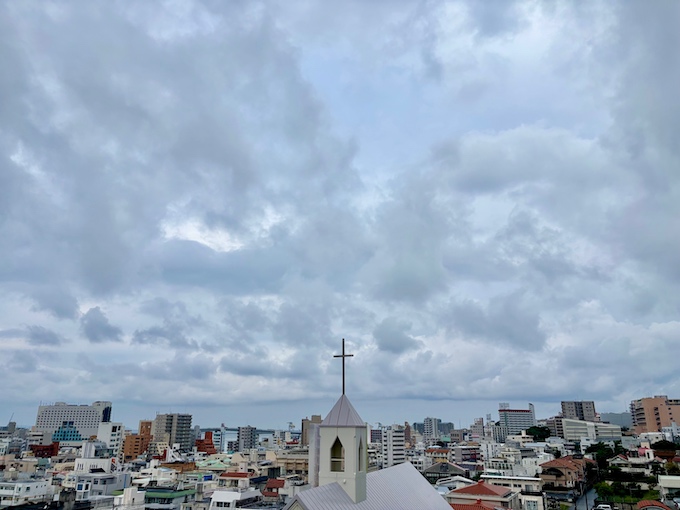 厚い雲に覆われている那覇エリアの空、緩やかに吹く北風も心地いい水曜日の朝です。
