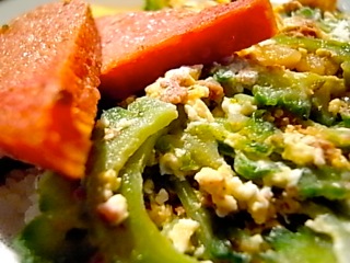 カリカリポーク、そしてコンビーフと豆腐とゴーヤー。