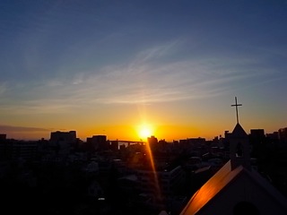 東シナ海に沈むサンセットタイム、願いの空です。空、繋がってます。