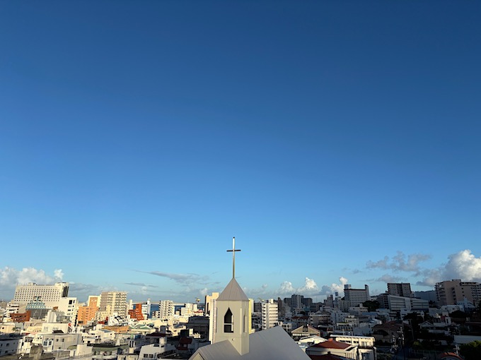 写真は朝日が射してきた午前7時の今日の沖縄の空です。