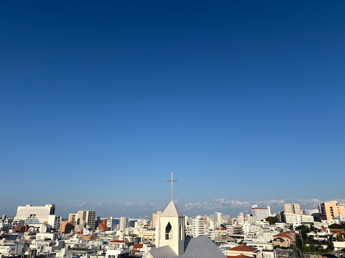 青のグラデーションが美しい今日の沖縄、緩やかに吹く北風が心地いい土曜日の朝です。