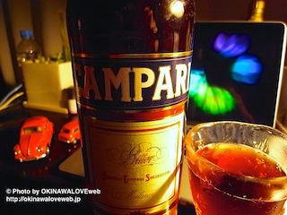 オリオンを飲み干したあとは、久しぶりにカンパリを。